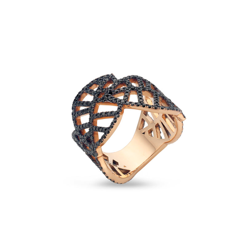 BEECH RING roségoud zwarte diamant pavé